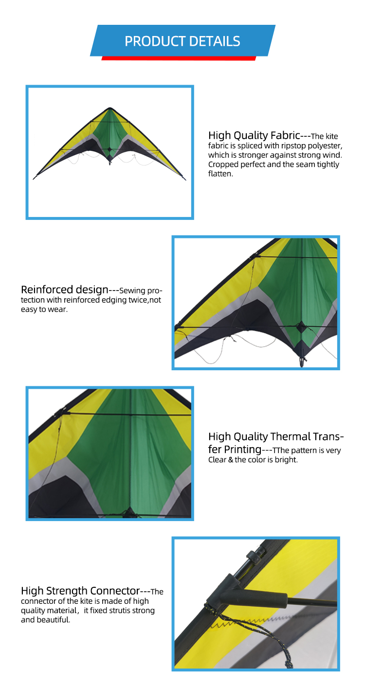 Length: The length of the string is often twice the width of the kite, and the angle needs to be dynamically adjusted according to the wind to maintain lift balance